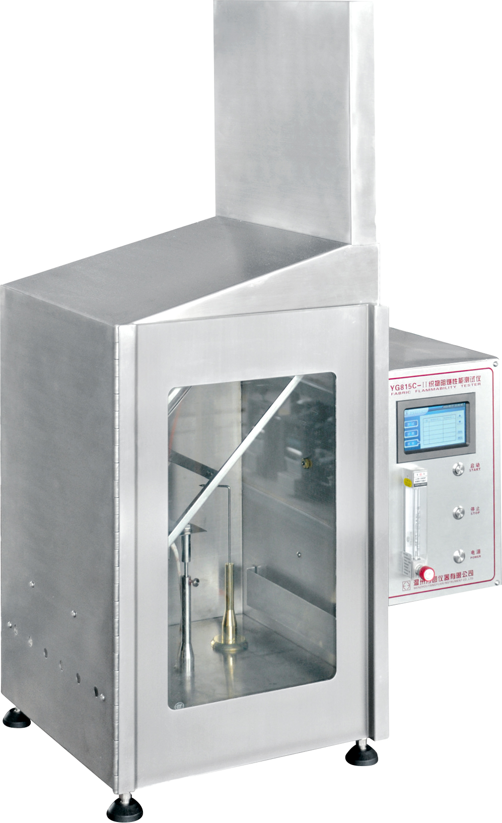 YG815E-II織物阻燃性能測試儀(汽車內飾件) GB8410-2006《汽車內飾材料的燃燒特性》 QB/T2729-2005《皮革物理和機械試驗 水平燃燒性能的測定》等標準。